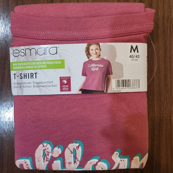 تیشرتهای زنانه برند اسمارا ساخت کشور آلمان از محصولات شرکت لیدل (lidl) هستند. جنس تیشرت از پارچه نخ با لطافت بالا است. و مدل یقه تیشرت گرد یا یقه هفت نسبتا بسته و جلو بسته است. پارچه داراى کشسانى بالا با تراکم بالا می باشد. همچنین متریال کار شده در این محصول 100٪ نخ(پنبه) می باشد. و همچنین در زمینه رنگ مورد نظر با طرح چاپی نیمه برجسته است. و دارای نشان استاندارد oeko-tex می باشد.