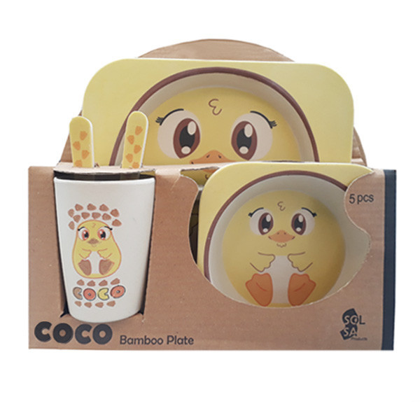 ست شامل 5 تکه می باشد یک عدد بشقاب یک عدد کاسه یک عدد لیوان یک عدد قاشق یک عدد چنگال