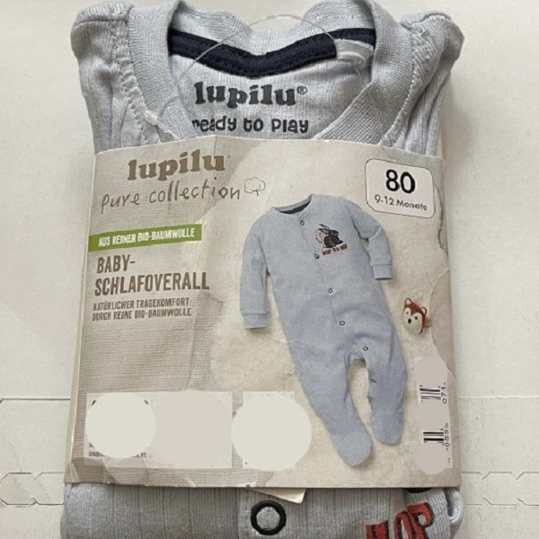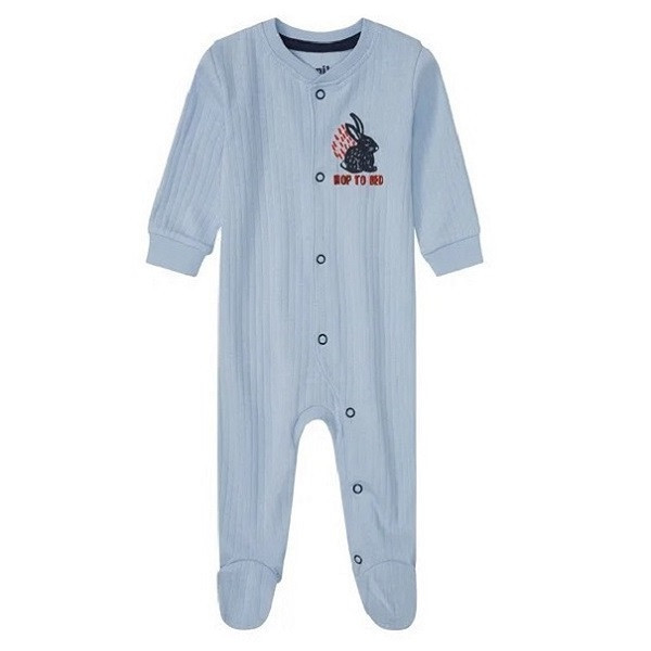 سرهمی نوزادی برند لوپیلو اصل آلمان مناسب برای دختران و پسران در بسته بندی یک عددی و در رنگ آبی روشن با گلدوزی خرگوش در سمت چپ سینه و جنس نخی ارائه شده است.