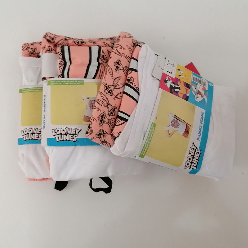 ست زنانه لونی تونز آمیخته ای از 100 درصد نخ و پنبه می باشد و چون بر چسب کیفیت دارد هیچگونه حساسیتی ایجاد نمی کند. لازم به توضیح است سایزبندی این لباس بر اساس سایزهای اروپایی یورو ( EUR ) می باشد و نوع استایل اصلی در عکس ها نشات دهنده جذب یا آزاد و یا بلند و کوتاه بودن لباس است . در کل سایز لباس های ایرانی نسبت به سایزهای آلمانی ( EUR ) در اکثر مواقع یکی نیست. به طور کلی برای انتخاب لباس آلمانی شما باید یک سایز از سایز لباس ایرانی خود را کم کنید به عنوان مثال اگر در سایز ایرانی XL می پوشید باید در سایز آلمانی L را انتخاب کنید حتما جدول تبدیل سایزهای ایرانی به آلمانی را در قسمت عکسها مطالعه بفرمایید...لطفا با رنگهای مشابه بشویید و از مواد شوینده رنگی استفاده کنید .